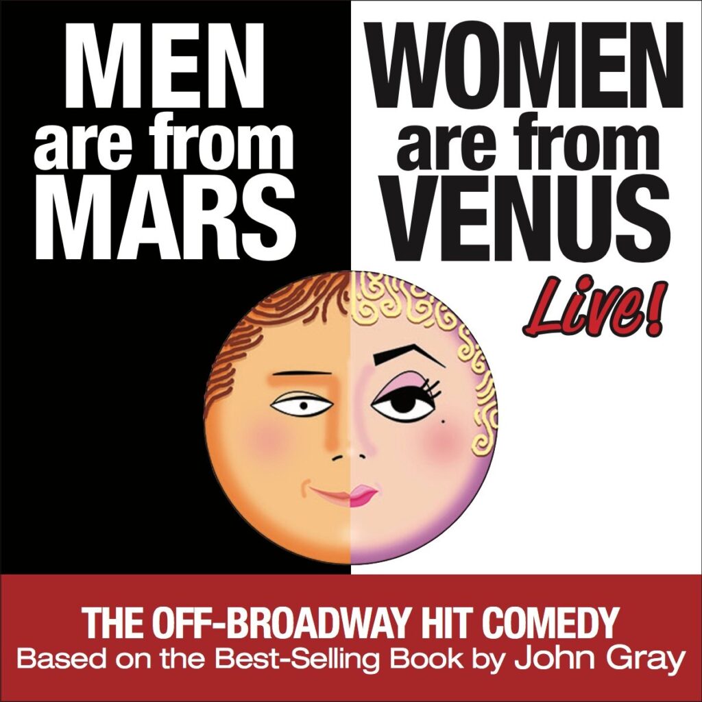 Men Are From Mars – Women Are From Venus LIVE!, the Off-Broadway hit comedy based on The New York Times #1 best-selling book of the last decade by John Gray, is back by popular demand. Moving swiftly through a series of vignettes, the show covers everything from dating and marriage to the bedroom. This hysterical show will have couples elbowing each other all evening as they see themselves on stage. Sexy and fast-paced, this show is definitely for adults, but will leave audiences laughing and giggling like little kids!